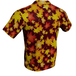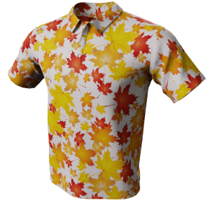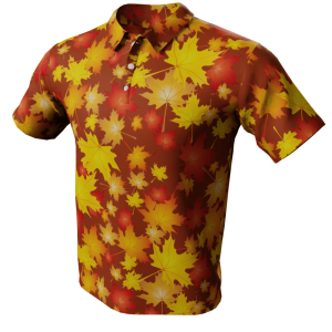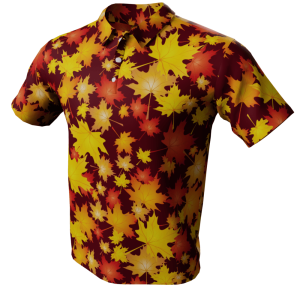 Style up your wardrobe this season and embrace the crisp autumn air with our Autumn Leaves Polo Golf Shirt. The design showcases a collection of maple leaves falling onto a solid color background. Choose from 4 colors.