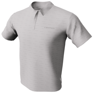 The Men’s Compass Wordmark Polo Shirt features the Compass Circle Logo repeating in on your choice of black or white background.