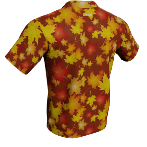 Style up your wardrobe this season and embrace the crisp autumn air with our Autumn Leaves Polo Golf Shirt. The design showcases a collection of maple leaves falling onto a solid color background. Choose from 4 colors.