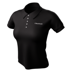 The Women’s Compass Classic Polo features Compass logo repeating on your choice of a black or white polo shirt.